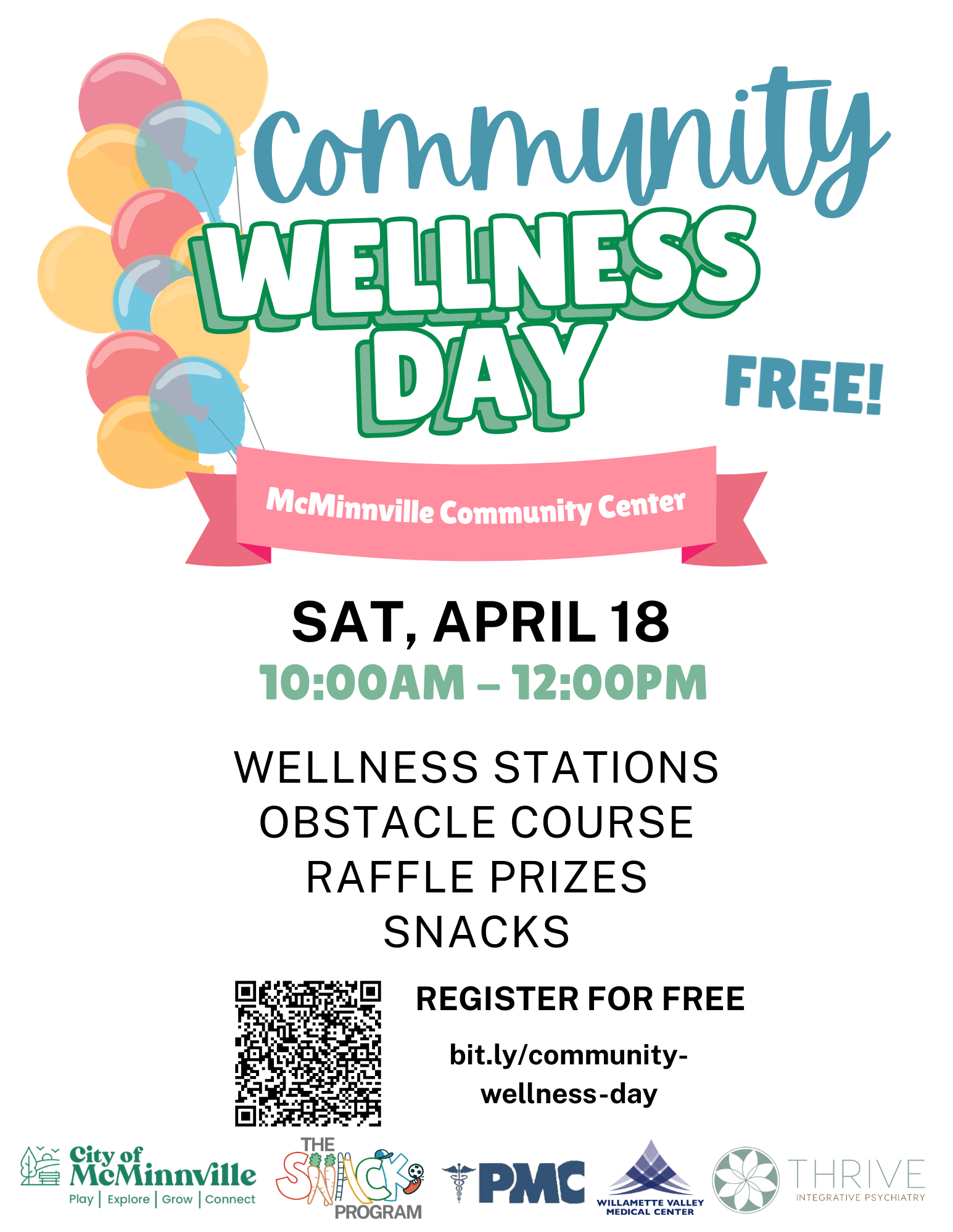The SNACK Program and McMinnville Parks & Recreation are excited to host Community Wellness Day on Saturday, April 18th from 10am-12pm at the McMinnville Community Center.
